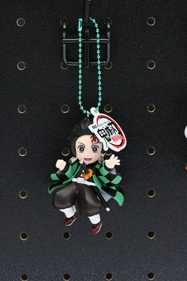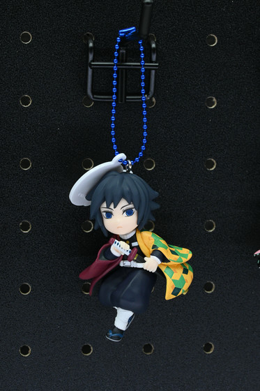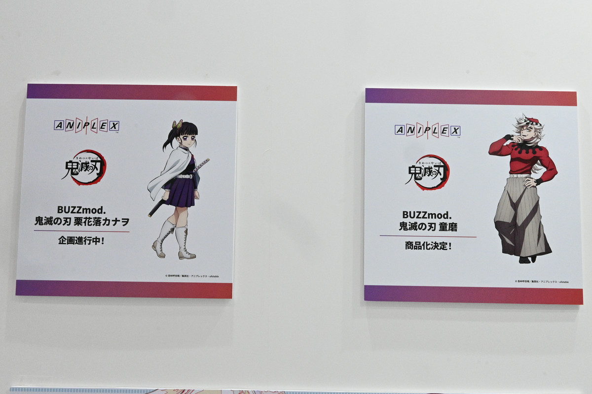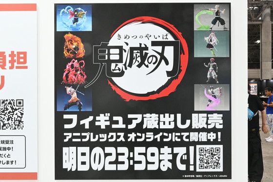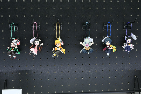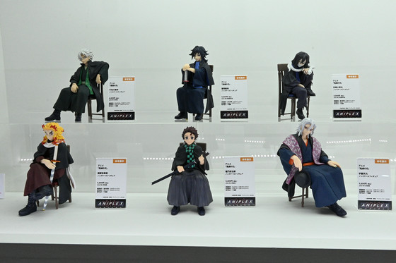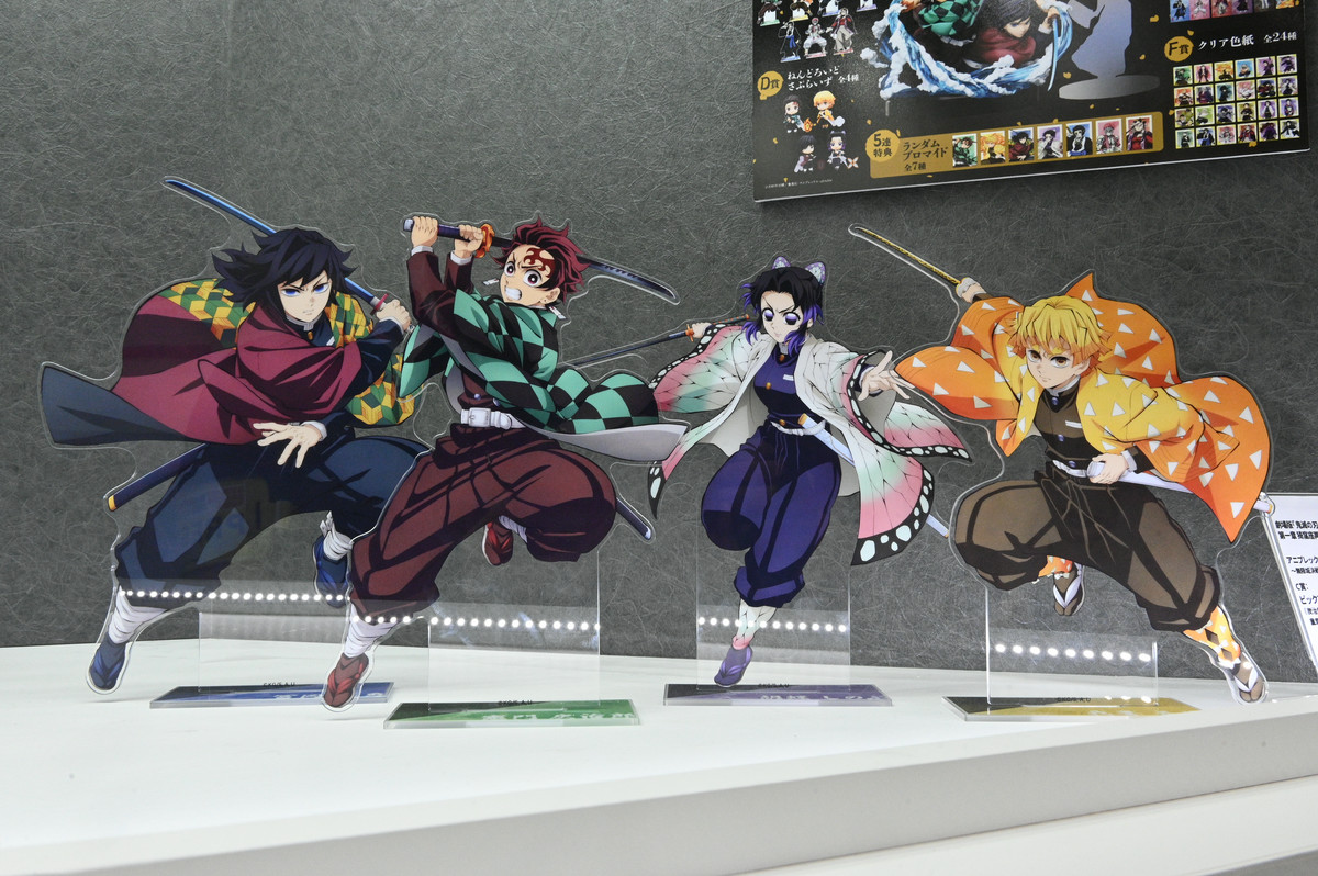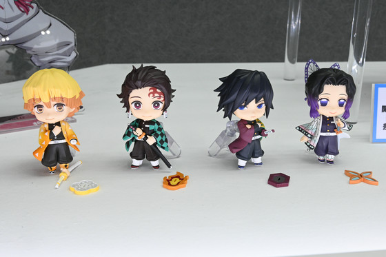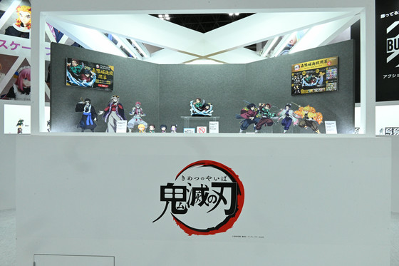 A row of 'Demon Slayer' figures were lined up on the display stand in the center of the booth.