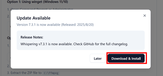 When you press it, the following will be displayed, so click 'Download & Install' to complete.