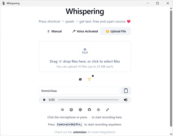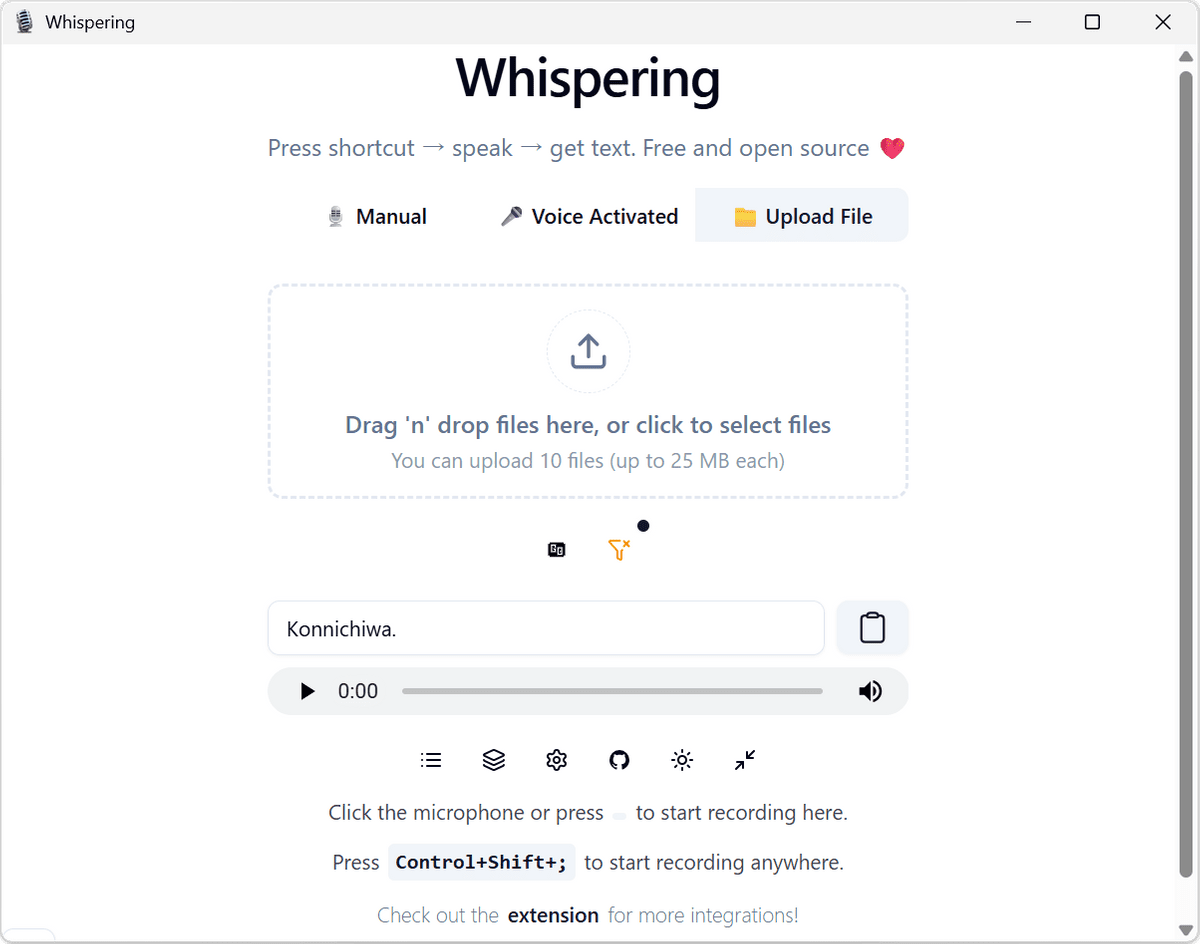 The transcription results for both the recording and the audio file will be saved to the clipboard.