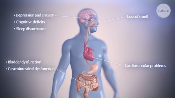 Other symptoms include depression, anxiety, cognitive decline, sleep disturbances, loss of smell, bladder and gastrointestinal dysfunction, and cardiovascular problems, some of which may appear before the movement disorder.