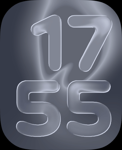 'Flow' uses Liquid Glass, with translucent digital numbers and a liquid-like background color that shifts as you tilt your Apple Watch.