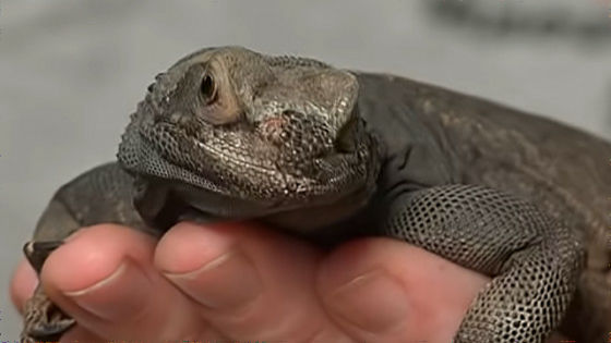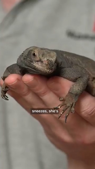 The man is caring for a chuckwalla named 'Rocky.'