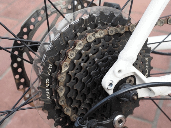 A bicycle chain. It's rusted to the point that it's time to replace it. When you zoom in, you can see that even the fine details of the rust are clearly recorded.