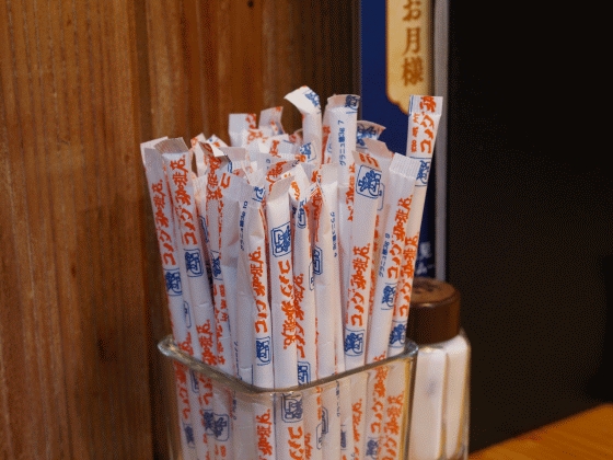 I took a photo of a sugar stick on a table at Komeda's Coffee, capturing the faded feel of the handwritten font.