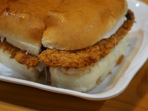 A close-up shot of the miso katsu bun, which really captures the crispy texture of the pork cutlet.