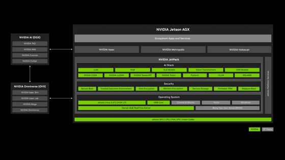 開発キットは既に販売されていて、2025年9月から出荷される予定。電源に接続するだけで使える簡単設計で、ロボティクス向けの「NVIDIA Isaac」や動画解析AIエージェント向けの「NVIDIA Metropolis」など、さまざまな開発プラットフォームを開発キットから利用できます。