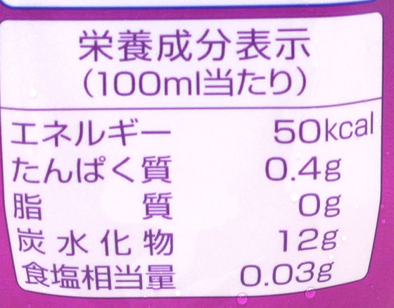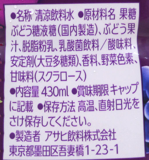 原材料は、果糖ぶどう糖液糖、ぶどう果汁、脱脂粉乳など。