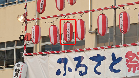 お知らせその2、2025年7月に告知した通り、「茨木地区ふるさと祭り」にGIGAZINE後援の提灯が飾られました。