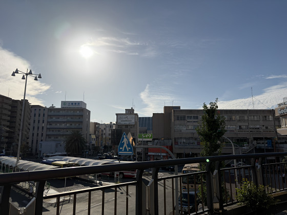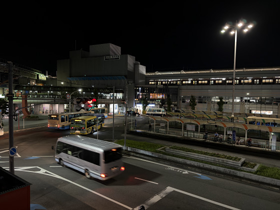 バスターミナルも撮影。右上の大型照明の周りにゴーストが発生しています。