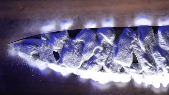 刃に塩を載せた状態で超音波をオンにしてみると、振動の様子がよくわかります。
