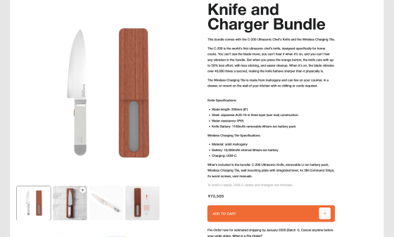 ワイヤレス充電ケース付きの「Knife and Charger Bundle」が税込7万500円でした。
