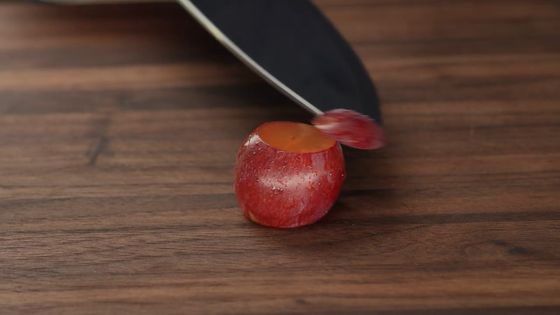 ただ置いただけの果物を、手で押さえることすらせずに上部だけカットすることも可能。